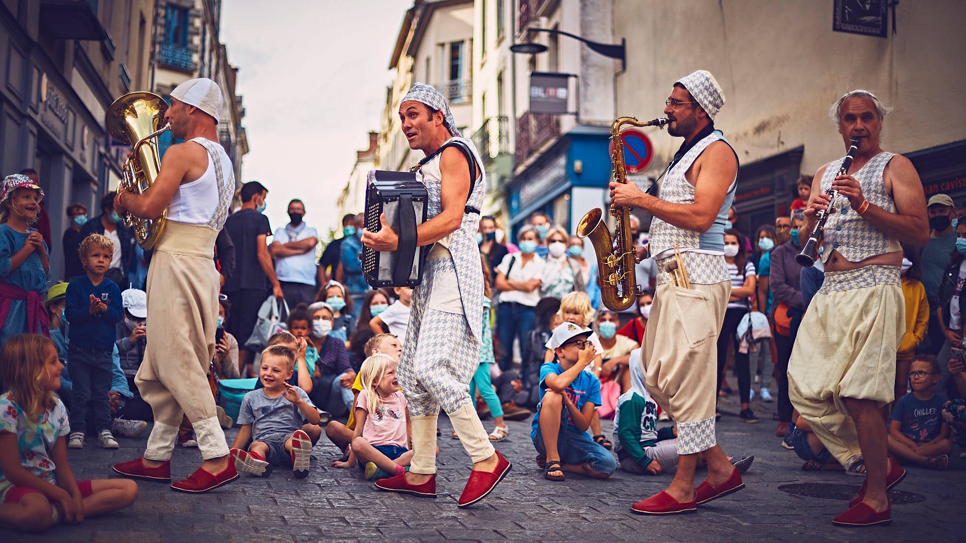 Fanfare poétique clownesque dans le cadre de Faites Lire ! Dimanche 6 octobre, de 10h à 18h. Plusieurs déambulations durant la journée, vers 10h30, 14h et 16h30 (sous réserve de modifications) – dans la "Rue du Livre". Cette fanfare décalée est tout sauf académique. Elle sollicite tout ce qui passe à sa portée. Puisant dans un répertoire de reprises et de compositions originales, ces drôles de personnages embarquent, emmêlent les spectateurs et le mobilier urbain dans leur univers poétique parsemé de chorégraphies et de saynètes improvisées. Et hop ! une java avec madame et son sac. Et bim ! on prend la pose en vitrine en samba. Et fioup ! Mais où sont-ils donc passés ? Au balcon ? Dès 6 ans. Durée : 30 min chaque déambulation.